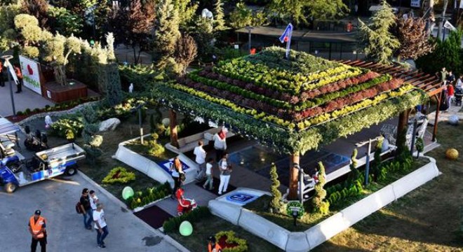 Büyük Ankara Festivali’nde Büyükşehir Belediyesi şirketlerinden biri olan Anfa tarafından sergilenen bitki evi ilgi görüyor.