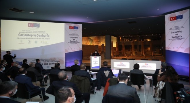 Gaziantep Büyükşehir Belediye Başkanı Fatma Şahin ise törende yaptığı konuşmada AB ile ortak yürütülen Arkeoloji Ensititüsü’nün artık tamamlanma üzere olduğunu, bilim dünyası ve kültür rotasının artık merkezinin Fırat ve Gaziantep olduğunu gördüğümüz yeni bir döneme başladığını aktararak, “Pozitif psikoloji ve gündemle bunları çok daha fazla konuştuğumuz yeni bir dünyaya ihtiyacımız var. Birleşmiş Milletler ve Avrupa Birliği’nde konuşulan en önemli konunun sürdürülebilir kalkınma olduğunu gördük. Bu kalkınmada sadece ekonomik kalkınmanın yetmediğini, insani bir kalkınma modelini, çevreyi koruyan bir kalkınma modelinin Dünya için ne kadar önemli olduğunu gördük. Her şerde bir hayır vardır, her zorlukta bir kolaylık vardır. Buradan çıkarılacak derslerle pandemiden sonra kurulan yeni dünyaya hem ülke olarak, hem Gaziantep olarak hazırlanıyoruz. Veren elin alan elden üstün olduğunu ve bu konudaki manevi değerlerin bu göçe ilaç olduğunu hepimiz şahit olduk. Yıllardır beraber yaşanılan Gaziantep’te en önemli şeyin ‘iyi yönetişim’ olduğunu görüyoruz. Liderlik, duruş çok önemli ama şehrin modeline baktığımızda aslında ‘Gaziantep Modeli’, valimizin başkanlığında paydaşlarımızla iyi yönetişim, kardeşlik, birlikte iş yapma modelidir. Sorunlara çare üretme modelidir. Bu büyük sorunu yerel anlamda tek başına çözmenin mümkün olmadığını görüyoruz. Güçlü paydaşlarla birlikte koordine ederek bunu çözmek durumundayız. Daha fazla bir araya gelirsek, daha fazla yapılanları anlatmamız, dünyanın bütün ülkelerini Avrupa ülkeleri başta olmak üzere buraya davet edip göstermemiz gerekiyor. Aslında mesele buradaki hibe, mali destek değil. Aslında en büyük mesele kardeş olmamız, empati yapmamız. Dünya barışına gidecek yolda hepimize düşen görevin hakkını vermemiz gerekiyor. Gaziantep Büyükşehir Belediyesi olarak 7 yıllık bu süreçte büyük hedeflere yola çıktığımızda dibimizde koca bir kaos ve savaşın sınırları nasıl etkilediğini, güvenliği sağlamadığınızda projelerin önemli olmadığını, güvenli şehir olmadan bunları başaramayacağımızı gördük. Bugünde konu başlığı olarak kurumsal kapasitenizi güçlendirmek gerektiğini, buna uygun olarak kendi modelimizi geliştirmek gerektiğini gördük. Bu kapsamda özel birimler kurduk, kendi içimizde bunu nasıl yönetiriz, dışarıya nasıl anlatacağız, projeler nasıl üreteceğiz buna başladık. Bütün ülkeler ve göç modellerini inceledik. Hangi modelin entegre edip asimile etmediğini, hangi modelin gettolaştırmadığını, huzur ve barış getirdiğini gördük. Bunun üzerine odalarla yoğun çalıştık, üniversiteler enstitülerini kurdu. Bugün yapılan güvenlik operasyonlarıyla çok daha güvenli bir hale gelmiş Gaziantep var. Bu birliktelik iyilerin, yaşatanların kazanacağı dünyayı inşa etme fırsatı veriyor” ifadelerini kullandı.