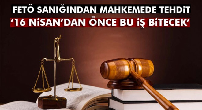 Kütahya'da Fetullahçı Terör Örgütü/Paralel Devlet Yapılanması (FETÖ/PDY) soruşturması kapsamında yargılanan tutuklu sanık, duruşma salonunda mahkeme heyetini "16 Nisan gelmeden bu iş bitecek, beni tutuklayanlar içeri girecek" sözleriyle tehdit etti.