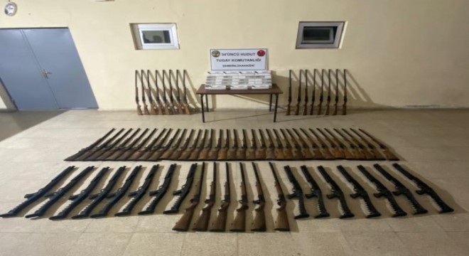 Hudutlarda, çok sayıda tüfek ve sigara ele geçirildi.