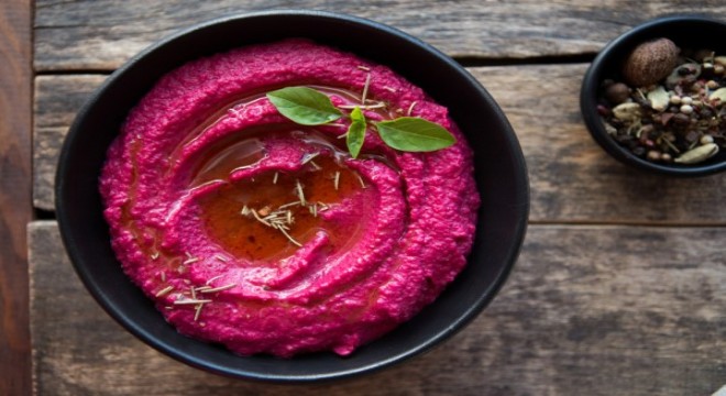 İki su bardağı haşlanmış nohut, 1 orta boy haşlanmış pancar, 2 yemek kaşığı tahin, 1-2 diş sarımsak, 2 yemek kaşığı zeytin yağı, 1 çay kaşığı kimyon, az tuz ve limon suyunu blenderdan geçirin. Pancarlı humusunuz hazır!