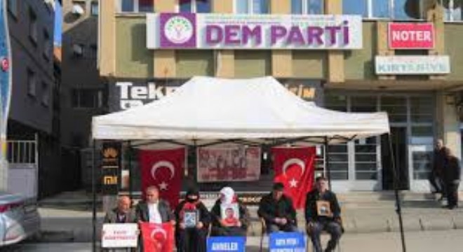 Muş'ta, terör örgütü PKK tarafından kaçırılan çocuklarının akıbetinden endişe duyan aileler, DEM Parti İl Başkanlığı binası önündeki protestolarına çarşamba günü de devam etti.