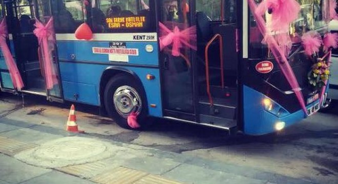 “Otobüste o hattın en eski şoförü bulunuyor. O önerdi, gelin arabası yapalım diye. Biz de heveslendik yaptık. Gelini almaya otobüsle gittik ama gelinlikle bindiremedik. Salondan sonra çıkışta binelim dedik trafikten dolayı otobüs düğün salonunun olduğu yere giremedi. Kendi aracımız vardı onu gelin arabası olarak kullandık, otobüs de bize eskortluk yaptı.