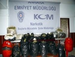 Ankara’da gerçekleştirilen operasyonda 184,5 kilogram esrar maddesi ve 515 gram kokain ele geçirilirken, olayla ilgili 13 kişi mahkemece tutuklandı. Uyuşturucunun sanayi tipi basınç tüpüne gizlenerek, doğu illerinden getirildiği ortaya çıktı.