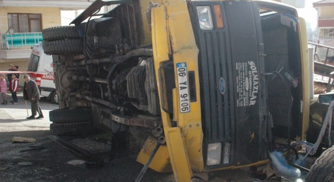 Kamyon şoförü Aslan, sokakta oyun oynayan çocuklara çarpmamak için direksiyonu kırınca kamyon elektrik direğine çarparak devrildi. Devrilmenin etkisiyle kamyonun ön dingilleri koparken, 06 EA 9089 plakalı özel otomobilde de maddi hasar meydana geldi.