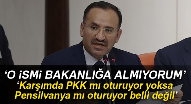 Adalet Bakanı Bekir Bozdağ, “Ben Adalet Bakanlığına Kati Piri’yi kabul etmiyorum. Benimle görüştüğünde karşımda PKK mı oturuyor yoksa Pensilvanya mı oturuyor belli değil” dedi.