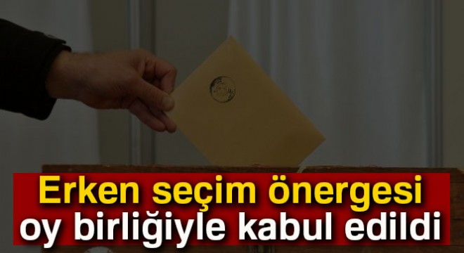 Meclis Anayasa Komisyonu’nda kabul edilen Cumhurbaşkanlığı ve milletvekili genel seçiminin 24 Haziran 2018'de yapılmasına ilişkin ortak seçim önergesinin görüşülmesi yaklaşık 3 saat sürdü. HDP’li üyelerin katılmadığı önerge, AK Parti, CHP ve MHP'nin oy birliği ile kabul edildi. Önerge, yarın TBMM Genel Kurulunda görüşülecek.