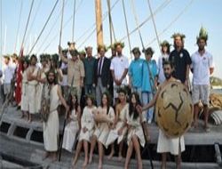 360 Derece Tarih Araştırmaları Derneği Başkanı arkeolog Osman Erkut ve gemi mürettebatına barışın simgesi olan defne ve zeytin yapraklarından yapılmış taç takıldı. Antik dönem asker giysileriyle gemiyi karşılamaya gelen Urla Toprak Sahne Tiyatro Oyuncuları da büyük ilgi gördü. Yolculuk sırasında uğradıkları her limanda ilgi ve sevgiyle karşılandıklarını dile getiren Arkeolog Osman Erkut, yolculuğun gerek Urla’nın gerekse Türkiye’nin tanıtımı açısından çok önemli olduğunu belirterek emeği geçen ve destek olan herkese teşekkür etti.