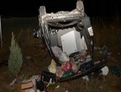 Lastiği patlayan araç takla attı