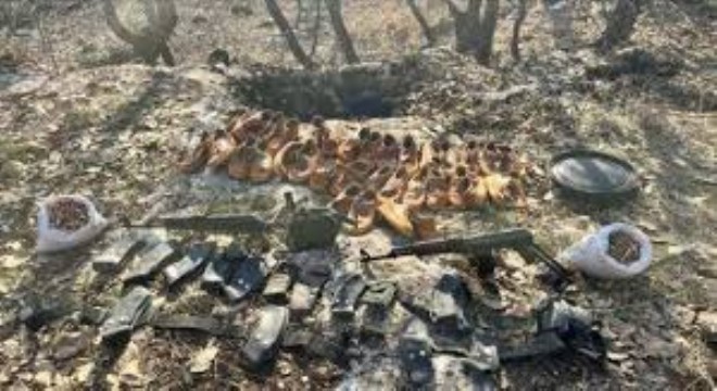 Belirlenen alanda düzenlenen operasyonda, terör örgütüne ait olduğu belirlenen 2 jelikan bidon içerisinde 2 kalaşnikof piyade tüfeği, bu tüfeklere ait 2 şarjör, biksi makineli tüfek için 700 mühimmat, 17 çift ayakkabı, 17 şarjör kütüklüğü, 3 palaska ve bir el çantası ele geçirildi.