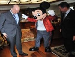 Büyükşehir Belediye Başkanı Melih Gökçek, sevimli çizgi film kahramanı Mickey Mouse’u ağırladı. Buluşmada Mickey Mouse, Başkent’in maskotu “misket” ile karşılıklı Ankara havası oynadı.