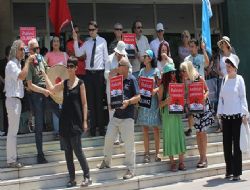 ANKARA / Davul çalıp, mani söyleyen grup, “Yaşam alanlarımızı yok ediyorlar” sloganı attı. Başkent Dayanışması’nın Akün Sahnesi önünde yaptığı basın açıklamasında, “Akün ve Şinasi Sahneleri 21 Temmuz 2014 tarihinde tekrar ihaleye çıkıyor. Açıldığı günden bu güne Devlet Tiyatroları’nın başarılı projelerine ev sahipliği yaparken, Türk tiyatrosunun ustaları da bu sahnelerde sevenleriyle buluştu” denildi. Açıklamanın devamında ise bu yapılanın bir demokrasi ayıbı olduğu ve özgürlük için bu sahnelerin kapatılmasına engel olunması gerektiği belirtildi. Hükümet yaşam alanlarımızı daraltarak nefes alanlarımızı yok ediyor diyen grup, “Sanatın önemini anlatmaya çalıştık, Dünya örneklerinden bahsettik, bu sahneler aktif dedik, anlamak istemediler. Kente karşı ihanetin ihalesi olmaz. 21 Temmuz 2014 saat 11.00’de tüm Ankaralıları, sahnelere sahip çıkmak için ‘İhaleye Hayır-Sanata Evet’ eylemini gerçekleştirmek üzere Akün Sahnesi önüne çağırıyoruz” ifadelerine yer verdi.ANKARA /