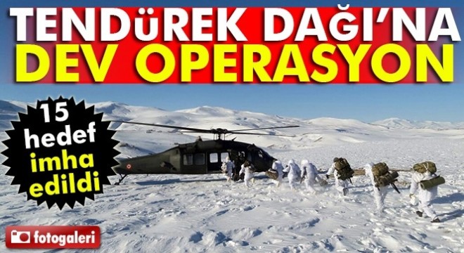 Ağrı Valiliğinden yapılan açıklamada, “İl Jandarma Komutanlığımızca Tendürek Dağı bölgesinde icra edilen geniş çaplı operasyonlar kapsamında uçar birlik harekatı marifetiyle bölgeye indirilen Jandarma Özel Harekat ve Komando birlikleri ile bölge ayrıntılı olarak aranmıştır.'' denildi.
