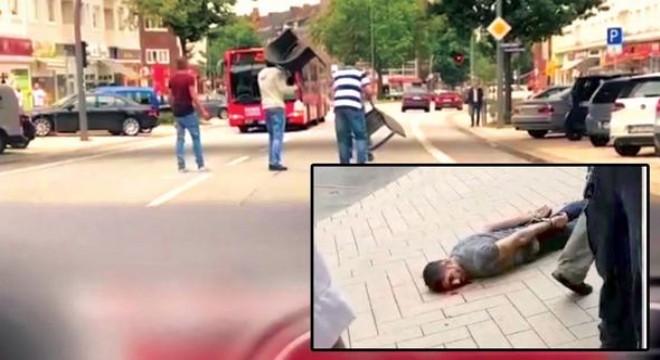 FİLİSTİN asıllı, Birleşik Arap Emirlikleri doğumlu Ahmad A. önceki akşam, haftasonu için alışveriş yapan insanlara saldırarak Hamburg’u kana buladı. Elinde 20 cm uzunluğundaki bir bıçakla tekbir getirip insanları rastgele bıçaklayan saldırganı bir Türk, çevredeki birkaç duyarlı kişiyle birlikte etkisiz hale getirdi. Ömer Ünlü adlı 35 yaşındaki Türk, saldırganın daha fazla kan akıtmasının önüne geçti. Ünlü ve diğerleri, yol üstündeki bir cafeden aldıkları sandalye ve sopalarla saldırganın önünü kesti. Saldırgan, bıçağı sallayarak üzerlerine yürüdü. Ancak Ömer ve diğer kişiler sandalyelerle saldırganı yere yatırmayı başardı.