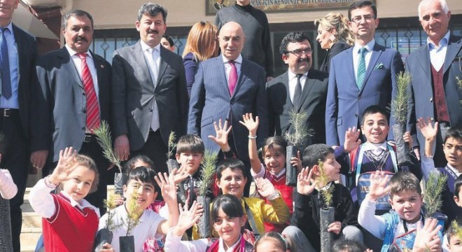 Bağlum Vildan Nurettin Demirer İlkokulu'nda 5 bin fidanın dağıtıldığı tören öncesinde öğrenci ve öğretmenleri selamlayan Başkan Altınok, okul idarecilerinin ve velilerin taleplerini dinledi. Başkan Altınok, fidan dağıtım töreni öncesinde öğrenci, öğretmen ve velilere yönelik yapığı konuşmasında, İstiklal Marşı'nın kabulünün 99'uncu yıldönümü olduğunu hatırlatarak, "Milletleri millet yapan kahramanlıklar ve kazanılan savaşlardır. Arkadaşının paltosuyla gezen Mehmet Akif, 'İstiklal Marşı'nı parayla yazamam' demiştir. Yine Akif, 'Rabbim Türk milletine bir daha İstiklal Marşı yazdırmasın' diyerek kurtuluş savaşımızın ne derece çetin bir bağımsızlık mücadelesi olduğunu belirtmiştir. İstiklal şairimiz Mehmet Akif Ersoy'u rahmet ve minnetle anıyorum" dedi.