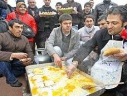 “Türkiye gündemine yumurta kırıyoruz” adlı etkinlikte, üzerinde “demokrat aşçı” yazılı önlük bulunan kişi, yumurta pişirdi. Gruptakiler, pişen yumurtadan yiyerek çevredekilere ikram etti.